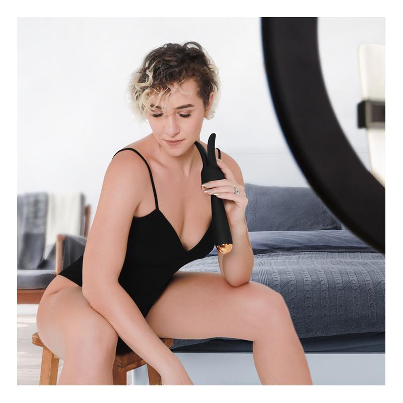 It has a heat function and a cover with rabbit ears. Thanks to its powerful motor, you can enjoy 5 + 1 vibration functions and 5 intensity levels ranging from a pleasant caress to an earthquake of pleasure. Its design is ergonomic, waterproof and has the most sophisticated technology. With a compact size it will surprise you in power.